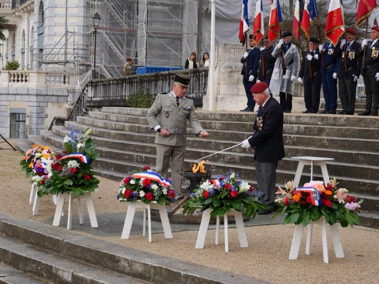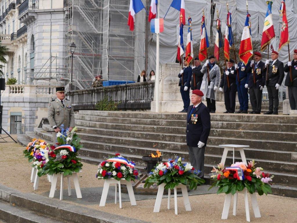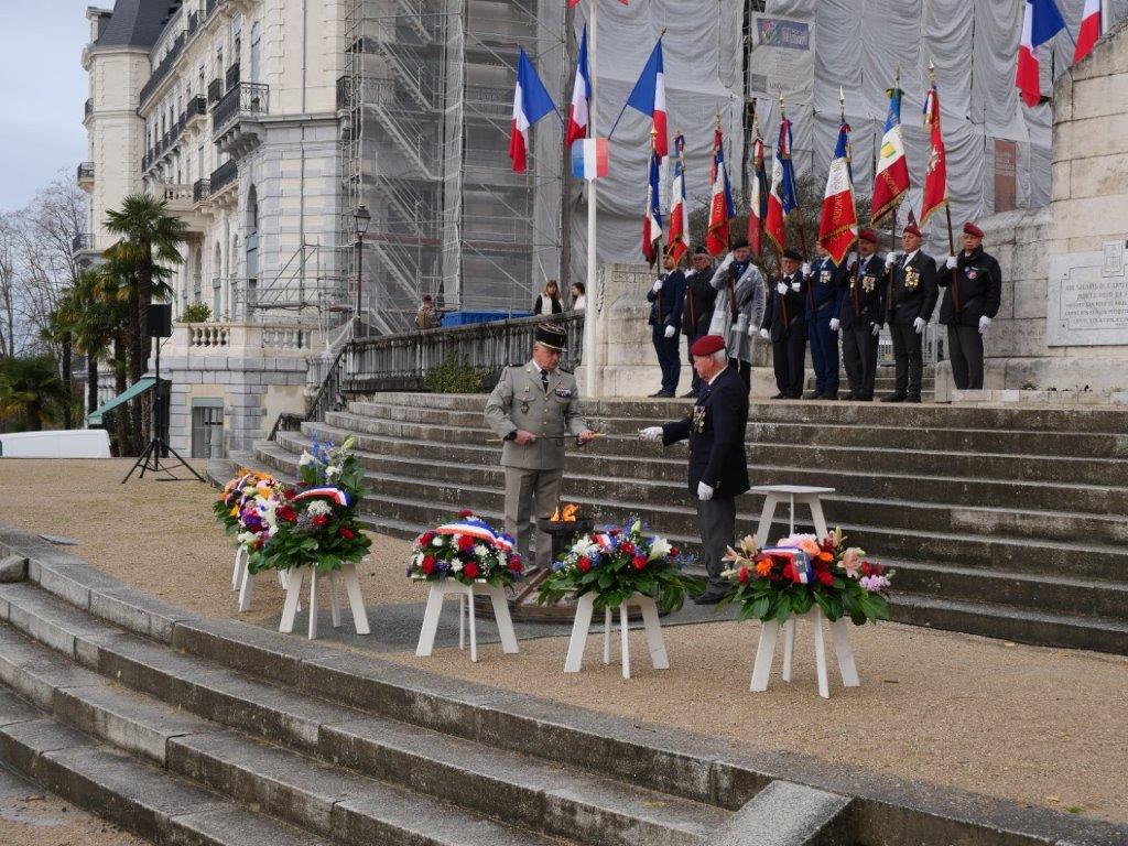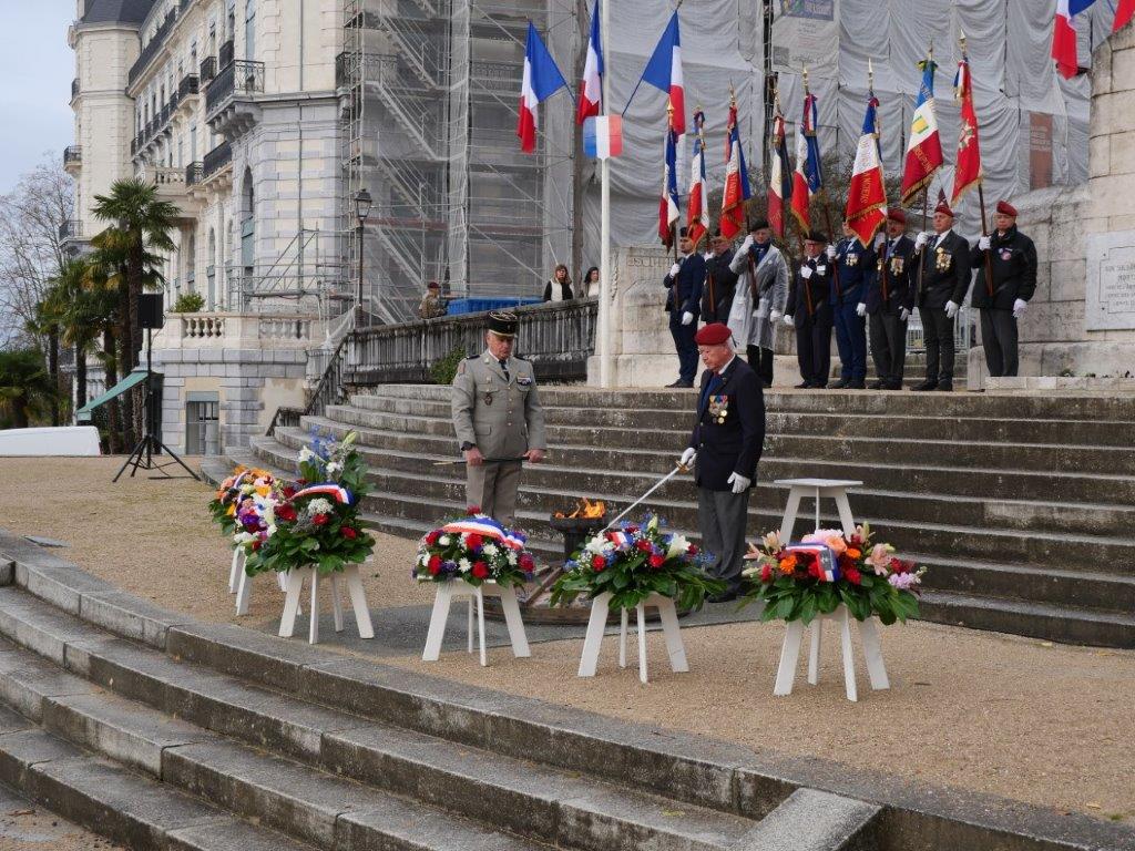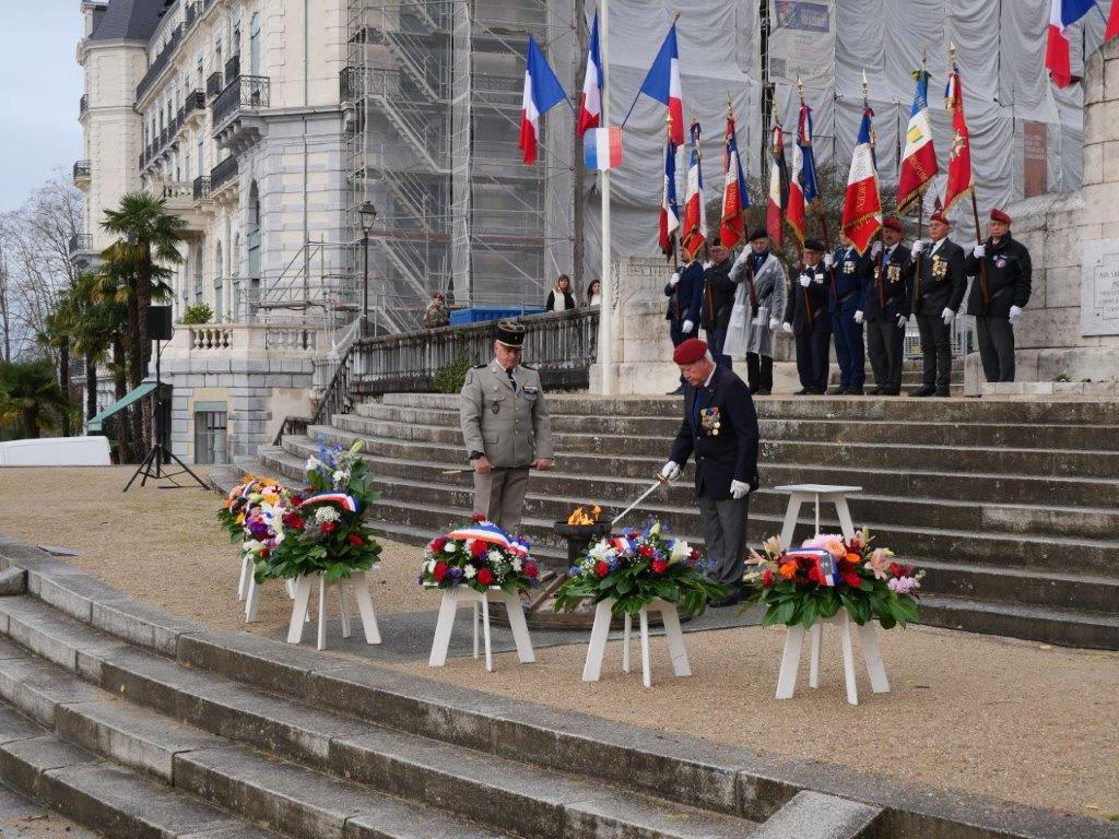 Par leur présence fidèle, ils perpétuent la mémoire collective, témoignent de leur gratitude envers les anciens combattants et contribuent à préserver les valeurs de devoir, de souvenir et de fraternité qui fondent l’esprit de l’association. Il reste 31 anciens combattants d'AFN, de 84 à 100 ans toujours bon pied bon oeil. Sur la photo 4 on reconnait Guy Douteau ancien enfant de Troupe de DALAT (indochine) ex-adjudant-chef, moniteur para. C'est lui qui a eu l'Honneur de raviver la Flamme au monument aux morts de Pau.
